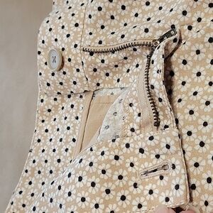 LOFT Size 00 Daisy Print Linen Cotton Blend RIviera Shorts, Exc. Used Condition. No Holes, Rips, Stains or Snags. Tan with Blue and White Daisy Pattern. Front Slant Pockets, Rear Welt Pockets. Zipper Fly with Button Closure. 4" Inseam. Belt Loops. Please refer to measurements in photos to ensure proper fit.