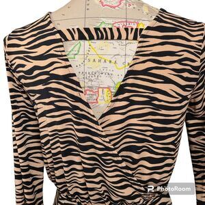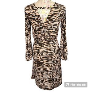 LOFT Size 00 Petite Brown Animal Long Sleeve Open V-Back Blouson Mini Dress NWT