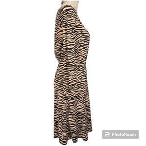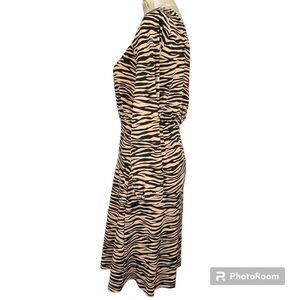 Loft, Business Casual, Neutral Tones, Office, Fall Fashion, Animal Print, Size 00 Petite, Brown, Black, Animal Print, Long Sleeve Dress, Open Back, Blouson, Mini Dress, NWT