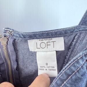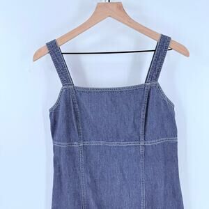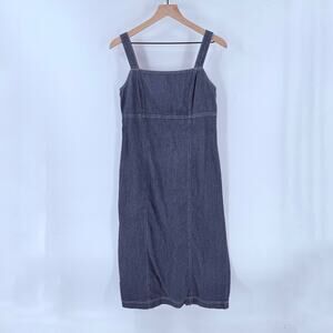 LOFT Size 8 Chambray Denim Midi Dress Y2K Babydoll Tank Sleeveless Square Neck