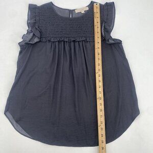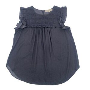 LOFT Size M Gray Satin Sleeveless Smocked Ruffled Front Blouse