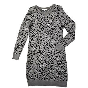 LOFT ~Size M~ Gray/Black Leopard Sweater Long Sleeve Unlined Dress Wool Blend.