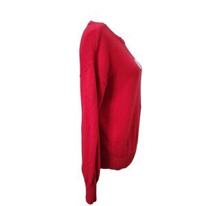 LOFT Size M Red with White Heart Long Sleeve Crew Neck Sweater, Gently Used
