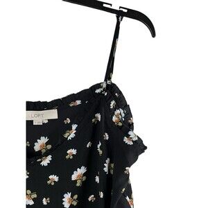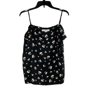 LOFT Size Medium Black Floral Print Ruffle Camisole Top Sleeveless V-Neck