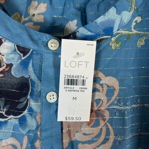 LOFT Size Medium (M) NWT Blue Long Sleeve Floral Blouse