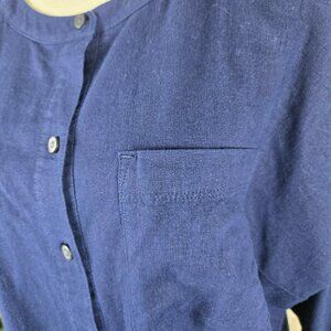 LOFT Size Medium Navy Blue Button Down Shirt Linen Blend Rounded Hem Pocket NWT