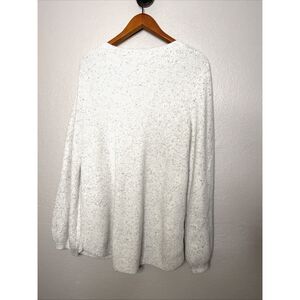 LOFT Size XL Sweater Oversized White Gray Pullover Soft Cotton Blend Long Sleeve