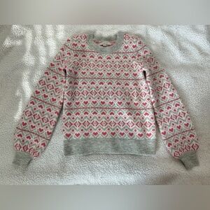 LOFT Size XS Sweater. Gray. Pink. White. With Hearts