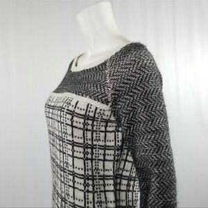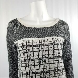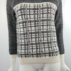 LOFT Womens Size XS Black & White Plaid Angora Wool Blend Light Weight Sweater