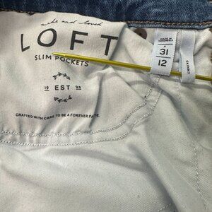 Discover flattering fits with these LOFT slim-pocket skinny jeans in size 31/12, blending stretch and structure for daily comfort. With a mid-to-high rise and sleek leg silhouette, they offer classic blue denim style that pairs effortlessly with everything from tees to blouses. Thoughtfully designed with slim front pockets and a discreet back waistband tag, they strike a polished balance between casual ease and wear-forward design. Ideal for work, weekends, or layering in your capsule collection.