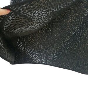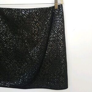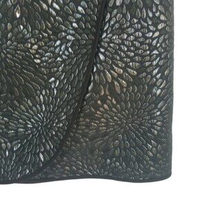 Faux wrap skirt with sass! Faux wrap, flat front. Stunning metallic silver print of petals in a circular blossom explosion! Hook & eye zipper back waist. Fully lined. Machine Washable! Size 12. EUC! Great for holidays, parties and events!