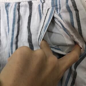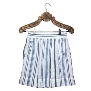 LOFT Skirt Mini Cotton Linen Blend Vertical Stripe Elastic Waist Pockets White S
