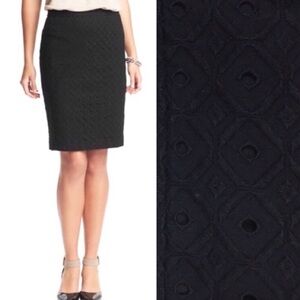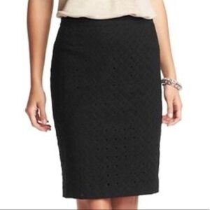 LOFT Skirt Pencil Eyelet Lace Embroidered Solid Black Textured Minimalist Size 4