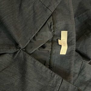 Like new, no signs of wear. Denim Blue Color 95% Cotton 5% Spandex 100% Polyester Liner 2 Slits in the Bottom Hem 2 Non Functional Pocket Accents on Back Side Zip Nice Lines Size 8 Petite