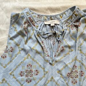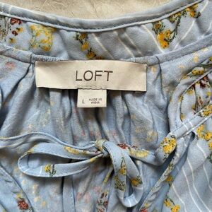 LOFT Sky Blue Floral Sleeveless Bow-Front Blouse