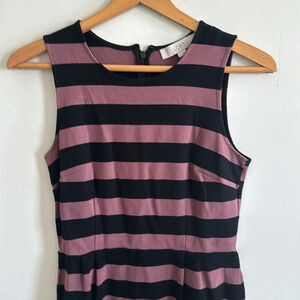 Chic sleeveless mini dress. Bold black and pink stripes. Perfect for casual outings.