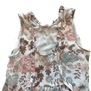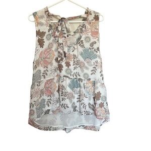 LOFT Sleeveless Blouse Pink Green Floral Tie Bow Front Flowy Boho Size Large