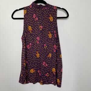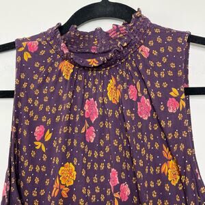 LOFT Sleeveless Blouse Top Rosebud Smocked Mock Neck Flowy Purple Pink SP