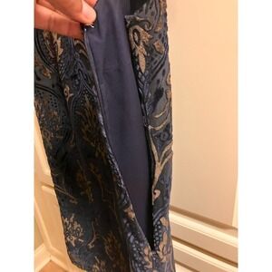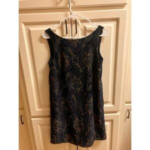LOFT Sleeveless Dress XS Blue Tan Knee Length Zip Up Low Back Lined Summer