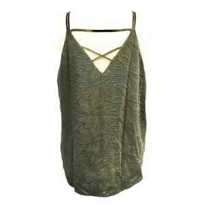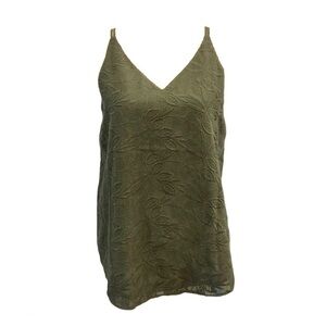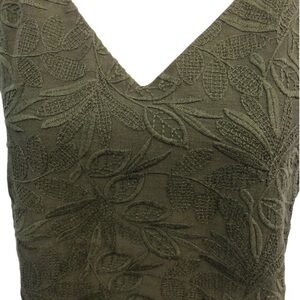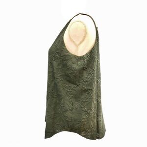 LOFT sleeveless hunter green embroidered top, fully lined, with double strand shoulder straps and crisscross detail in back, size S. EUC. The color is best portrayed in the last photo.