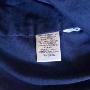 shell: 93% cotton, 7% Nylon Lining: 100%Cotton