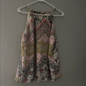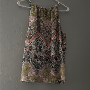 LOFT Sleeveless Green and Pink Tank Top with Bohemian Print 134
