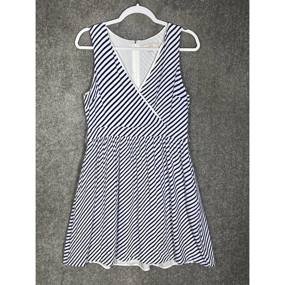 LOFT Sleeveless Lined Striped Crossover V-Neck Dress Womens Size 8 Blue White