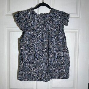 LOFT Sleeveless Paisley Blouse Black White Casual Top Wome