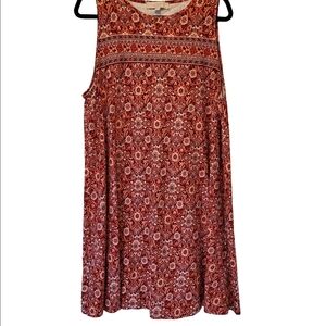 This chic dress from LOFT features a vibrant red color that makes a bold statement. Its sleek design is perfect for a night out or a special occasion, offering both style and comfort. This beauty has stretchy fabric with shades of red, pink, peach, blue, white and black. From a smoke free home.