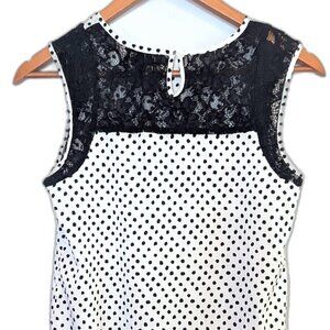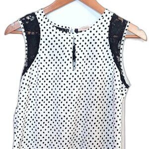LOFT | Sleeveless Polka Dot & Lace Baby Doll Tank Blouse Black & White | Size XS