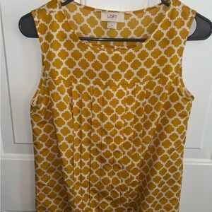 Add a pop of color to your wardrobe with this gorgeous LOFT sleeveless blouse in a bold mustard yellow and white geometric print. Lightweight and perfect for layering or wearing solo in warmer months!
