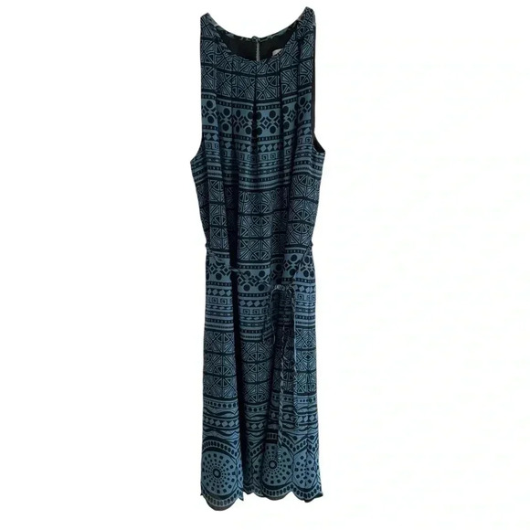 LOFT Sleeveless Shift Dress Geometric Teal Black