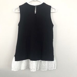 New LOFT lightweight, sleeveless mixed media sweater. Navy blue body with neckline and hem trimmed in white eyelet. Super cute! Size XS