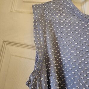 LOFT Sleeveless Textured Tie Waist Blouse Size Medium 100% Cotton Blue White Dot