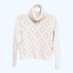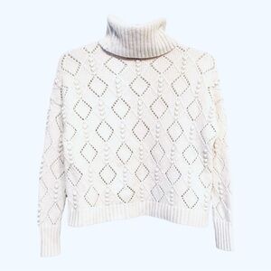 LOFT Small Whisper White Bobble Knit Wool Blend Long Sleeve Turtleneck Sweater