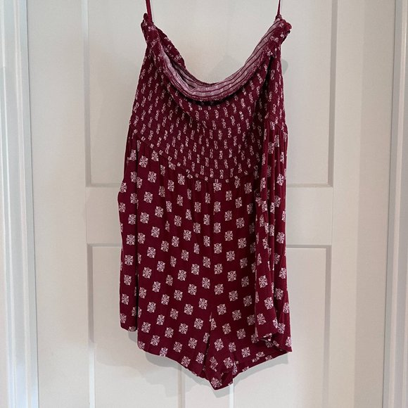Cranberry Smocked Shorts Jumper with pockets strapless the fit is really flattering wore it with a Jean Jacket.