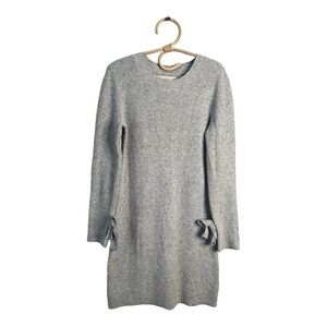 LOFT Speckled Lt Grey Crewneck Knee Length Sweater Dress with Tie Cuffs