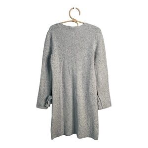 LOFT Speckled Lt Grey Crewneck Knee Length Sweater Dress with Tie Cuffs