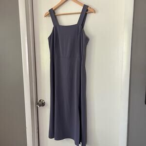 LOFT Square Neck Midi Dress Women's Size 6 Stone Gray Sleeveless Side Slit