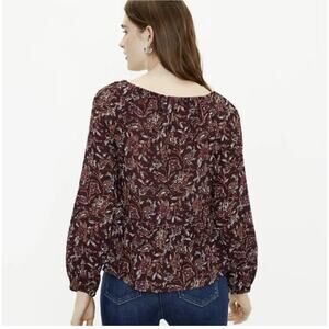 LOFT Square Neck Peplum Wine Burgandy Print Long Sleeve Top Large NWT