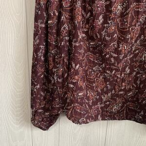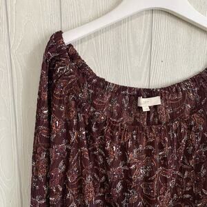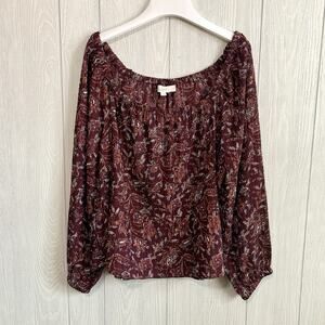 LOFT Wine Burgandy Print Long Sleeve Top Large NWT