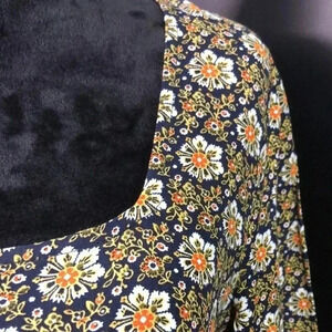 LOFT Square Neck floral print,loose fit,button cuffs,lightweight tan/navy blue