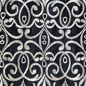 LOFT Strapless Navy w/ Silver Scroll Embroidery Fit & Flare Midi Dress Size 10