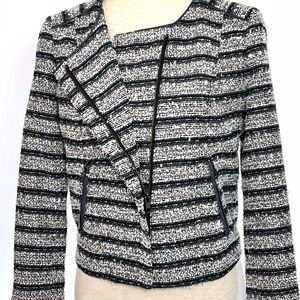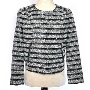 LOFT Stripe Cropped Tweed Jacket Sz 0