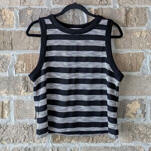 Excellent preowned condition ribbed sleeveless tank top from LOFT. Stylish sleeveless top with bold black and creamy tan stripes. Muscle tee. Lightweight and breathable polyester rayon fabric blend. No flaws or signs of wear, this looks and feels brand new!
