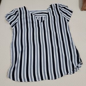 LOFT Striped Black and White Women's Top Flutter Sleeves Size Small