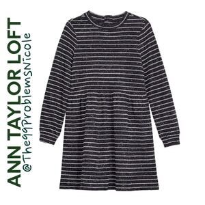 Loft Blue Flecked Stripe Button Back Long Sleeve Knit Dress Confetti sweater Dress