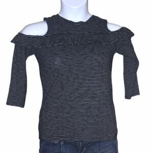 LOFT Striped Cold Shoulder Top Ruffle X-Small Black White