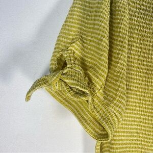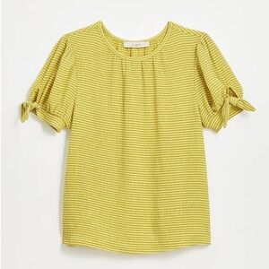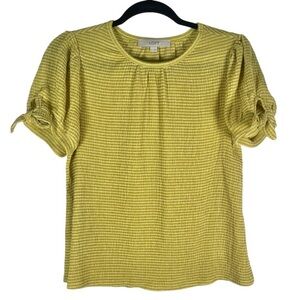 LOFT Striped Crinkle Tie Sleeve Top Chartreuse Green Size Small