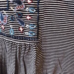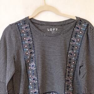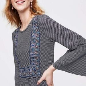 LOFT Striped Embroidered Long Bell Sleeve Top